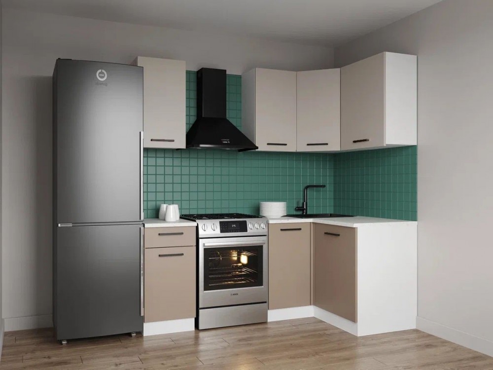 Кухонный гарнитур угловой Каппучино 2000*1200 (Стол. 38мм)