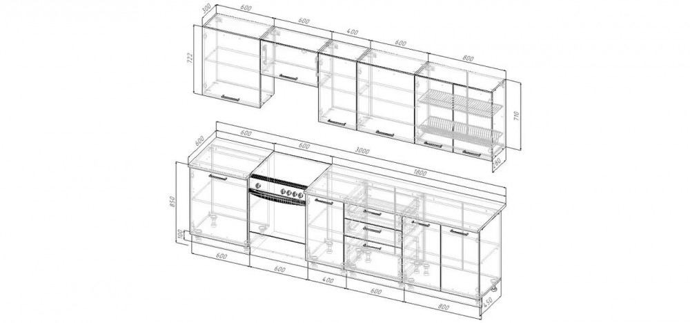 Кухонный гарнитур Виола 3000 (Стол. 38мм)